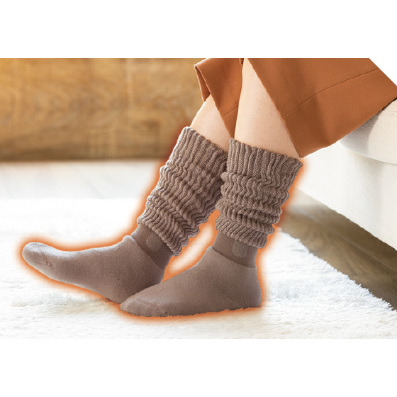 独自の特殊編みと吸湿発熱素材でしっかり暖か。