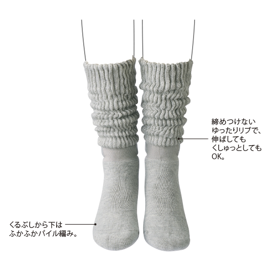 独自の編み方で足首を刺激。リブ部分はやわらかガーゼタッチ。