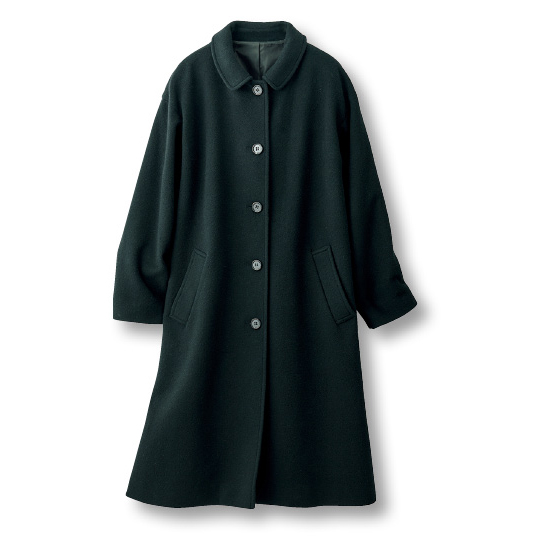 毛織物の産地、尾州の生地を使用。ウール糸に撚りをかけてふくらみ感をもたせ、ビーバー加工で起毛感を加えた、やわらかな肌触りと暖かみのある素材です。丸みのある衿や緩やかなAラインで、ほんのりかわいらしさもプラス。カジュアルにも着られるステンカラーコートです。