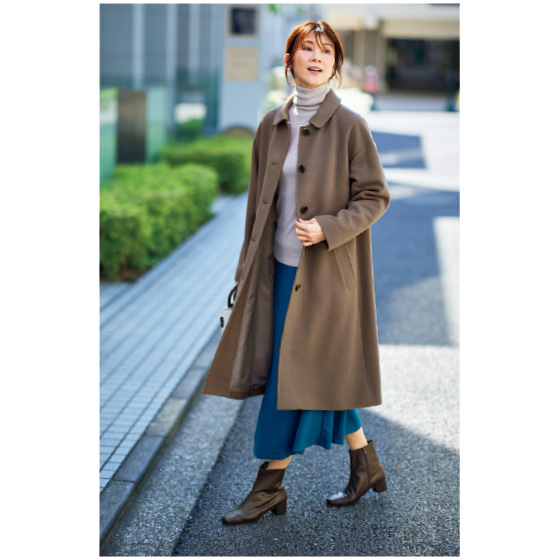 カジュアルが決まるステンカラーコートは、丸みのある衿でほんのりかわいく