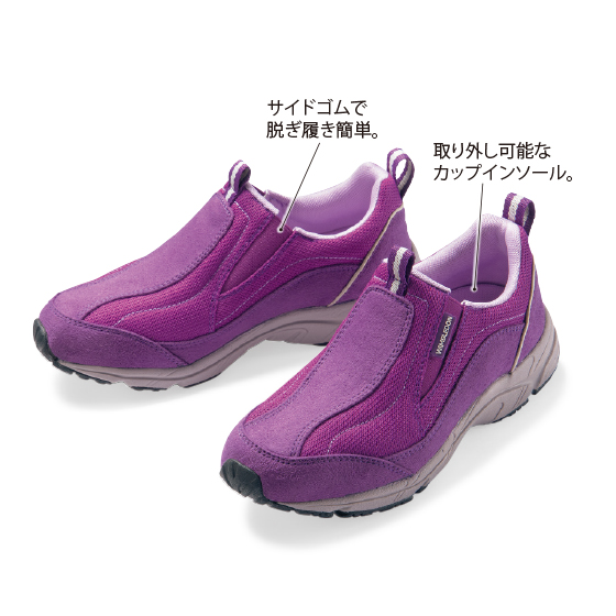 サイドゴムで脱ぎ履き簡単。取り外し可能なカップインソール。