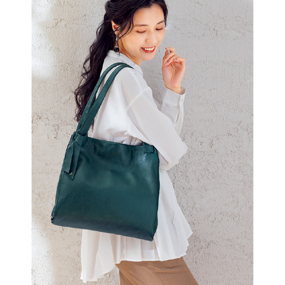 昔から皮革産業が盛んで現在でも100社以上のタンナーが集まっている姫路市。本品は、姫路市でなめされた姫路レザーを使用しています。肩掛けもでき、持ち手をスライドさせればショルダーバッグにもなる2WAY仕様。背面にファスナーポケット付き。