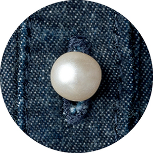 パール調ボタンがデニム生地に映えます。