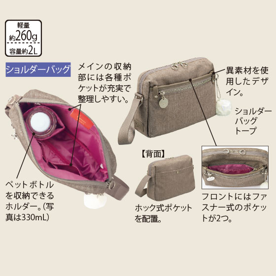●素材:ポリエステル、裏地=ポリエステル、ショルダー=ナイロン