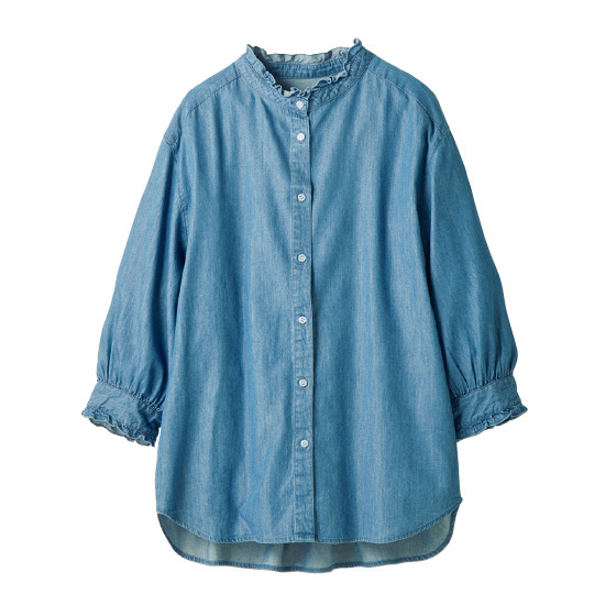 なめらかな肌触りのレーヨン混素材で、サラッとした軽やかな着心地。絶妙な袖丈とカフス&フリルのデザインが手首をすっきり見せてくれます。