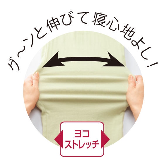 寝返りをうってもつっぱりにくい。ストレッチ2重ガーゼでゆったりと。