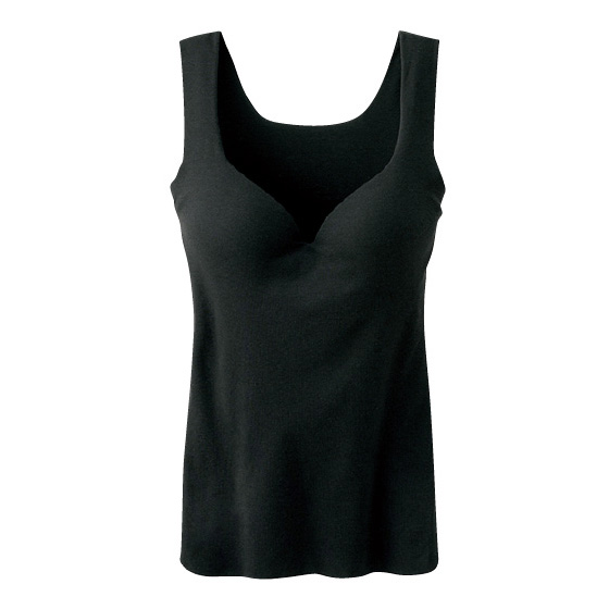 心地よく伸縮してボディラインの曲線にやわらかくフィットします。風を通しやすい一体型カップで、サイドに流れがちなバストを寄せ上げます。