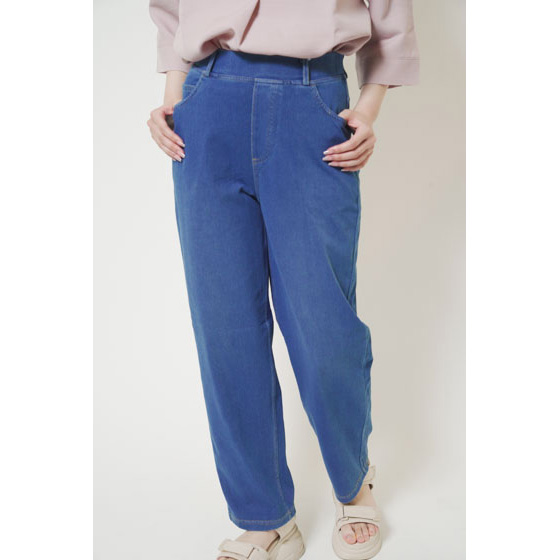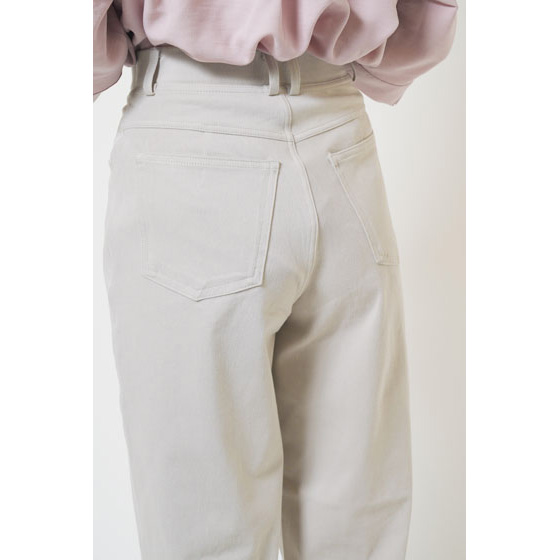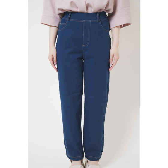 ファスナーなしのウエスト総ゴム仕様。締めつけ感が少なく、脱ぎはきもスルッとラク。