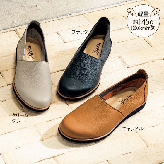 ※天然皮革のため、色、風合いが多少異なることがあります。履き心地を重視した1枚甲のため、着用時の摩擦や水濡れにより色移りや色落ちが生じることがあります。