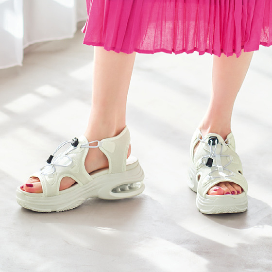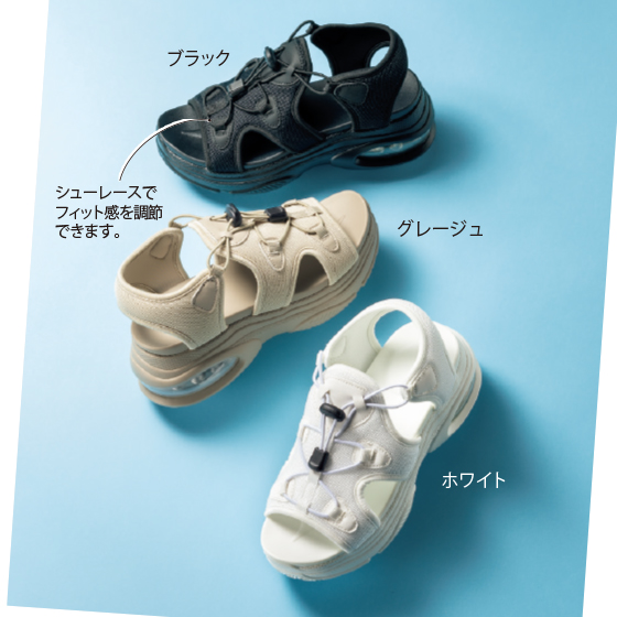 エア入りソールでスニーカー感覚の歩きやすさ。ボリュームのある厚底が、スポーティコーデを今っぽく見せてくれます。
