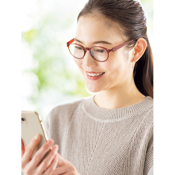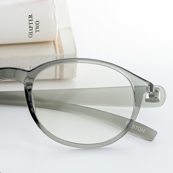 ボストンタイプのフレームがおしゃれな、トレンド感のあるリーディンググラス。しなやかなつるは締め付け感が少なく、金具を使用していないため緩みの心配もありません。気になるブルーライトや紫外線もしっかりカット。おしゃれ用に度なしもご用意。パソコンやスマホ用としてもおすすめです。