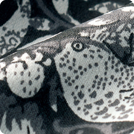 モリスの別荘の菜園で、ツグミがいちごをついばんでしまう出来事を図案化。モリスの作品の中で、最も有名で人気の柄です。