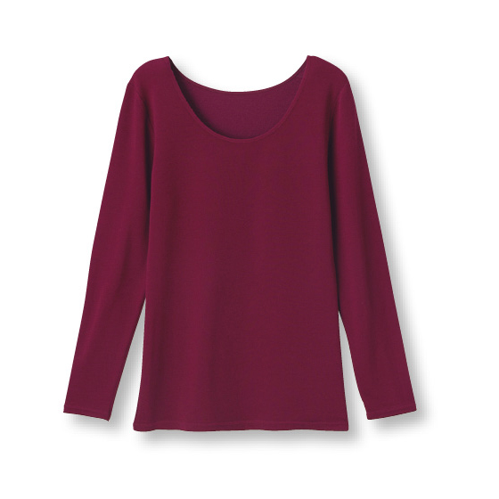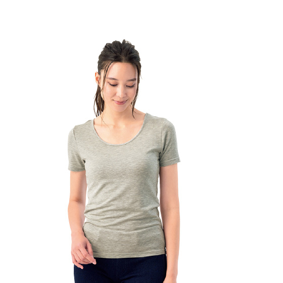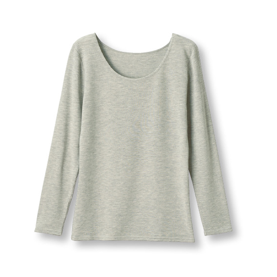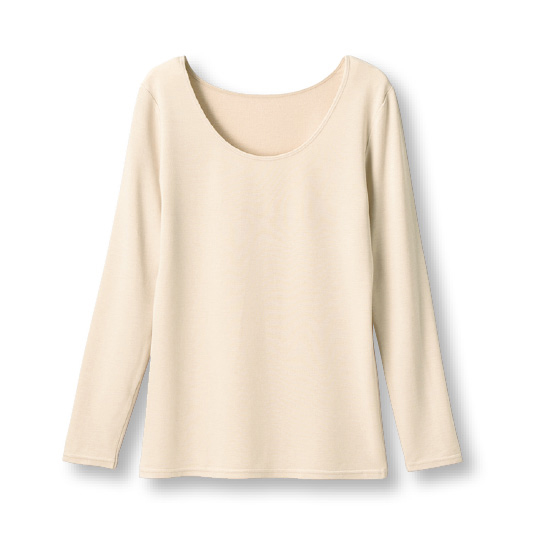 肌に触れる部分は綿100%。ナチュラルな着心地と、吸湿発熱素材の暖かさを両立。肌触りはやわらかく、伸びやかにフィット。