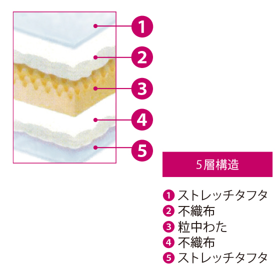 ボール状に加工した「粒中わた」が空気を含んでふんわりあったか!