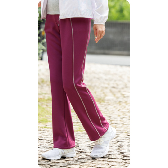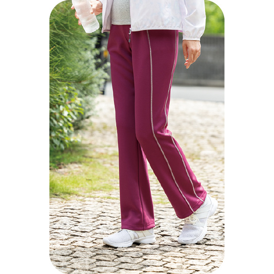 厚手で肌触りのよい裏起毛素材で、美脚見せも叶えるラクちんパンツ。寒い日の外歩きにおすすめです。