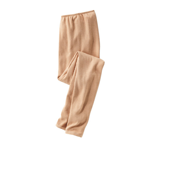 吸湿発熱の綿スムース素材に裏起毛を施し、真冬も暖か。股下・裾口はフラット仕様で快適です。