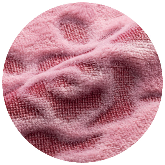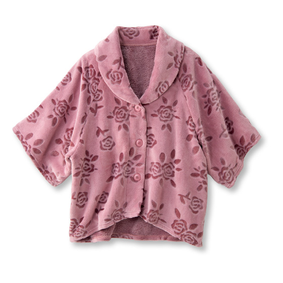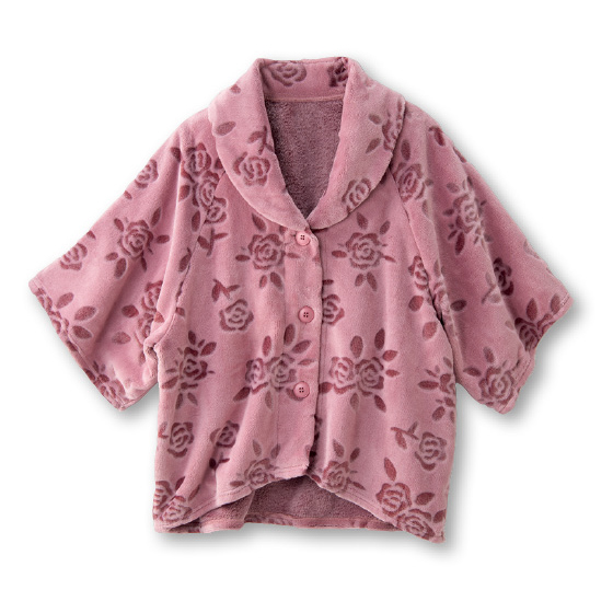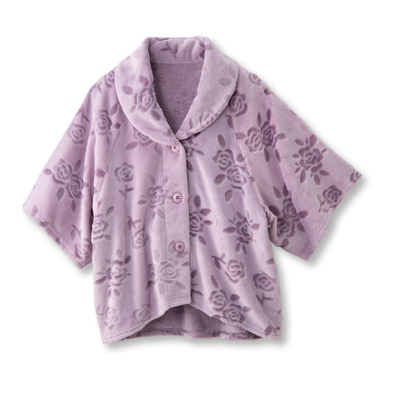 毛足の長いフリース素材だから、ふんわりやわらかく心地よいあたたかさ。花柄の型押しを施した上品なデザインで、気分も華やぎます。