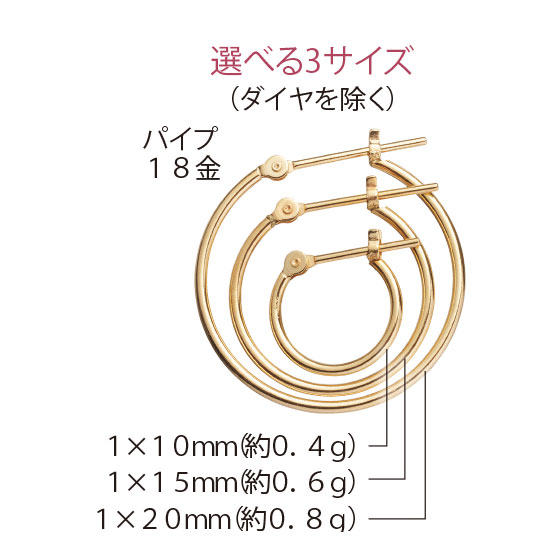 大人気のフープピアス。お好みに合わせて選びやすいサイズ展開がうれしい。シーンを選ばずに使える万能アイテムです。