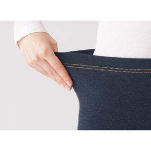 ふっくら厚手で秋冬に活躍。伸縮性があり、よく伸びるので動きもラク。サッとはけるウエスト総ゴム仕立て。デニム調ネイビーにはジーンズ風のステッチ入り。