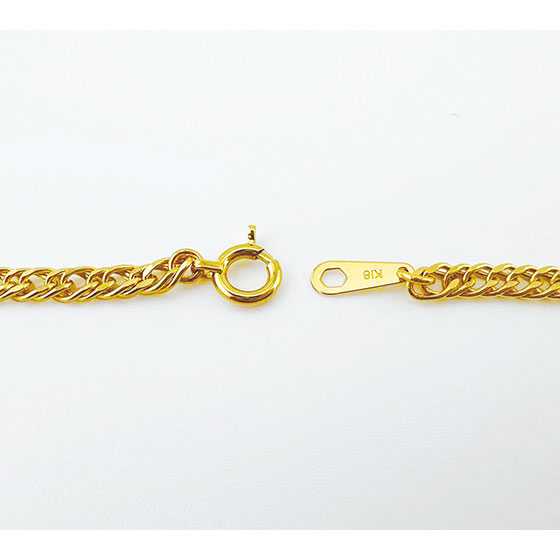 長く愛用できる定番のダブル喜平チェーン。中空加工によりボリュームがありながら着け心地は軽やか。