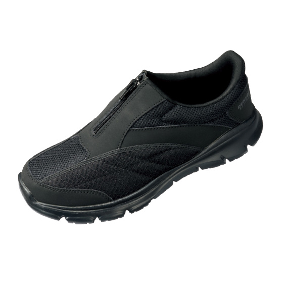 かかとが踏めてちょっとした着脱もラク。前ファスナーで脱ぎ履きもスムーズ。