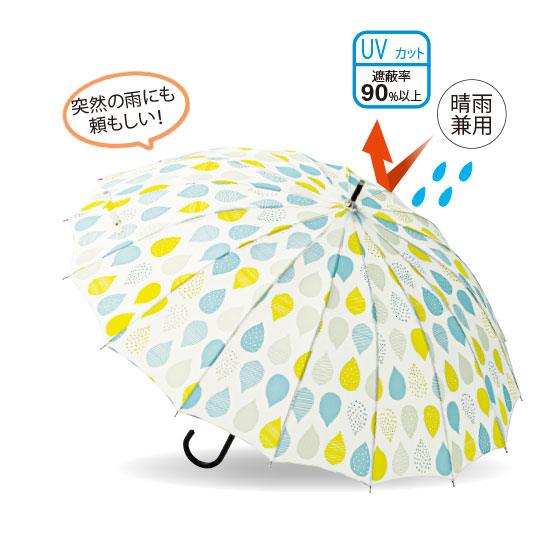 京都の傘専門店がつくった、丈夫な16本骨傘。急な天気の変化にも対応できる晴雨兼用です。ワンタッチで開くジャンプ式。