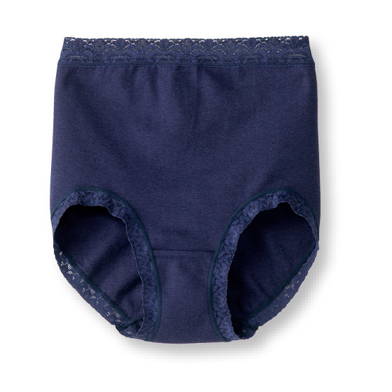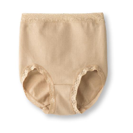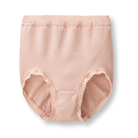 身生地はなめらかな綿混素材。やわらかく包み込まれるようなやさしいはき心地です。ストレッチ性が良く、深めのはきこみでおなかとヒップにぴったりフィットします。●マチ裏は綿混素材です。