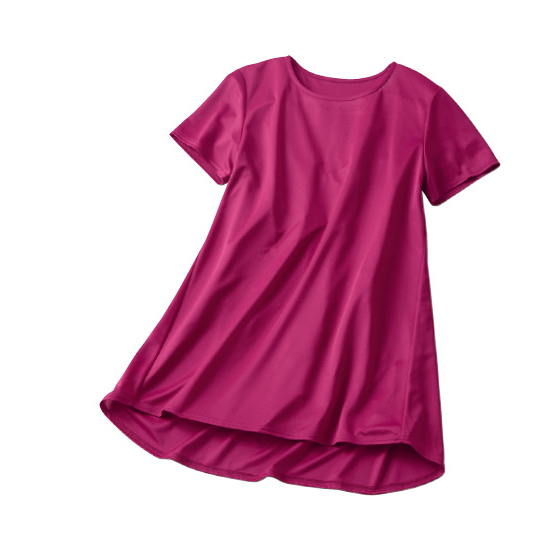 後ろが長いフィッシュテールデザイン。腕を上げた時も背中やヒップラインが隠れるから安心です。