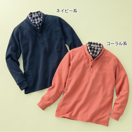 首元にシャツ衿をあしらった重ね着風でコーデ要らず。