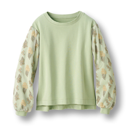 ●素材:綿83%・ポリエステル17%(ニット、ダンボールニット)、袖チュール部分=ナイロン100%、袖チュール刺繍糸=ポリエステル100%
