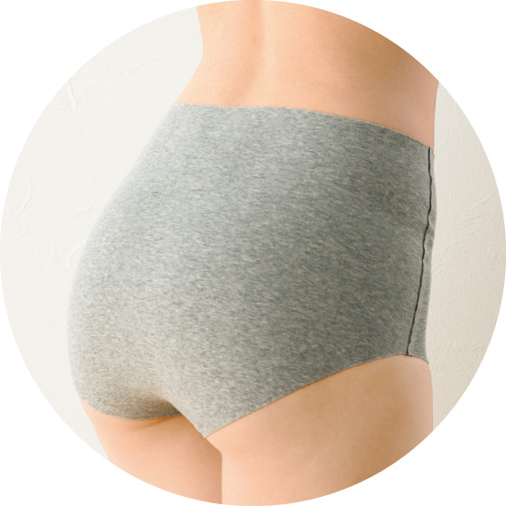 おなかもヒップもすっぽり包む深ばきタイプです。マチ裏は綿混素材です。