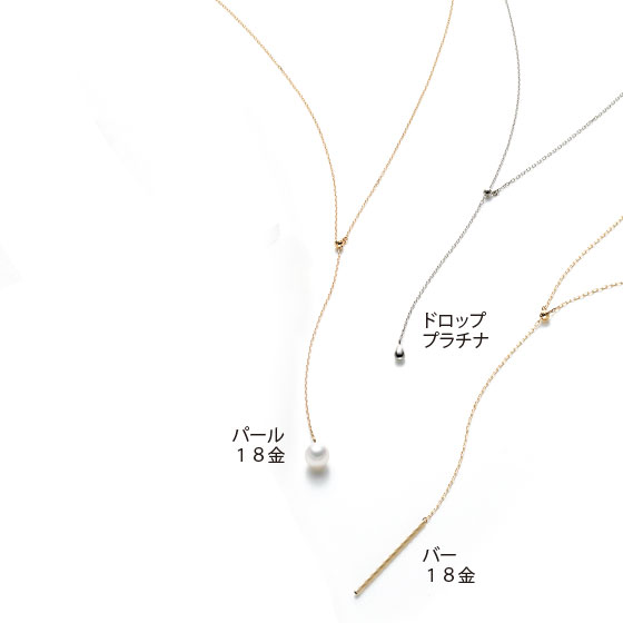 着ける人をすらりと見せる、Y字のネックレス。スライドして長さ調節ができます。