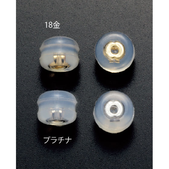 18金またはプラチナをシリコンで包んでいるので、シリコンのみのキャッチよりしっかり留まり外れにくい。