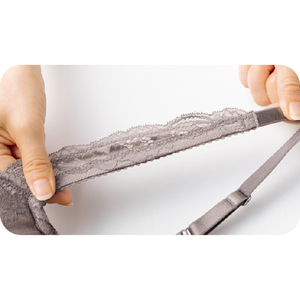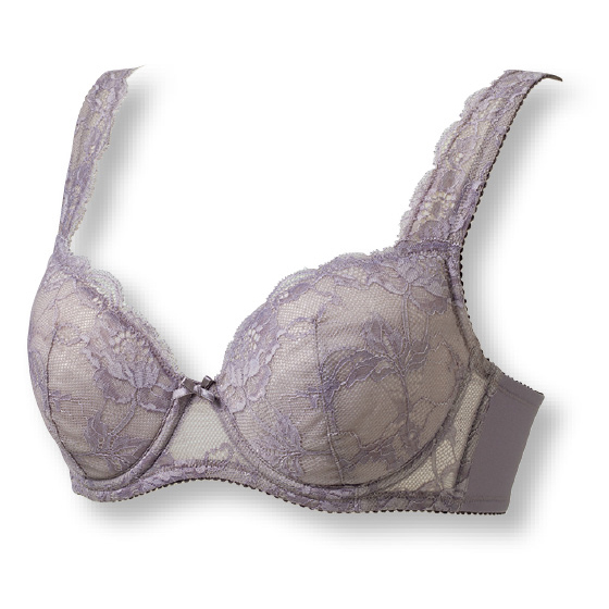 伸縮する幅広の肩ひもがバストをラクに吊り上げ。