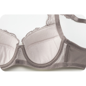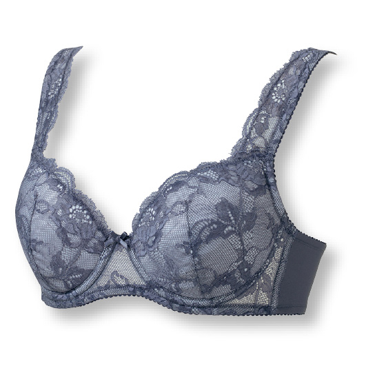 浮きにくいやわらかカップは、弾力がありバストにピタッとフィット。伸縮する幅広の肩ひもがバストをラクに吊り上げ。