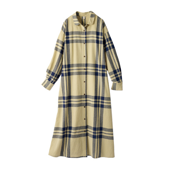 シーズンレスで着られる、やわらかな綿100%素材。まる衿が大人かわいく、Aラインシルエットで体形カバーも。はおりにもなるので長く活躍。