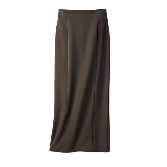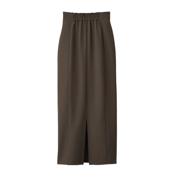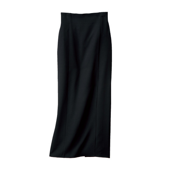 細身なのに脚線を拾いにくいIラインで、パンツ感覚のコーデが楽しめるロング丈。ベルト切替のないハイウエストで脚長見せも叶えます。腰回りには、ウエスト後ろのゴムギャザーでほどよいゆとり。※通年着用できます。