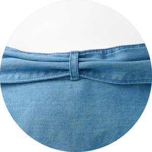 ほどよい光沢と落ち感があるデニム素材でサラッと軽やかな着心地。コンパクトなバンドカラーに大きめのボータイをあしらった華やかなデザインです。