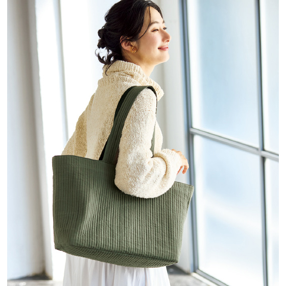 軽くて持ち歩きやすいトート。やわらかなキルティングの風合いが可愛い。