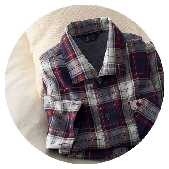 やさしい温もりの綿100%、3重ガーゼパジャマ。飽きのこないベーシックデザインで、衿を立てれば首元あったか。※おなかにやさしいソフティーゴム使用。