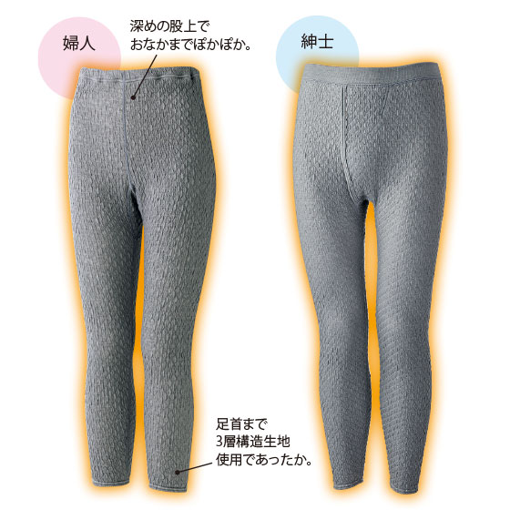 魔法瓶を思わせる優れた保温力は、登山家や漁師など厳しい寒さの中で活動するプロにも信頼されるほど。その中でも「ひだまり 頂(いただき)」は、着ぶくれしにくく、ふだん使いにおすすめです。3層構造の特殊加工を施したウエーブ状の編地が、空気層をつくって体温を蓄え、しっかり保温。肌側の素材ダンロン(R)が温もりをキープすると同時に湿気を逃がし、ひだまりのような暖かさとさわやかな着心地を両立させます。一度使ったら手放せなくなるに違いありません。