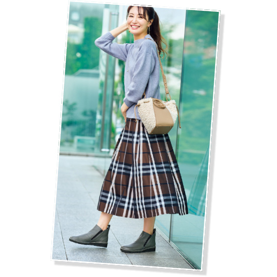 両サイドに斜めについたファスナーで脱ぎ履きがラク。
