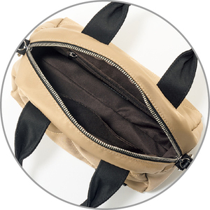 ●素材:ナイロン(はっ水加工)、裏地=ポリエステル、持ち手=綿、ショルダーベルト=ポリエステル