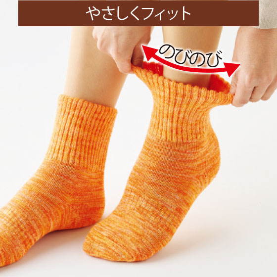 履き口はやわらかで、暖かな2重編み。締め付けにくく足にやさしい設計です。