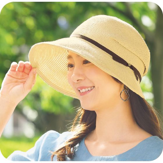 つば先にワイヤ入りでお好きな形にアレンジ自在。帽子が風で飛ばされるのを防ぐハットストラップ付き。