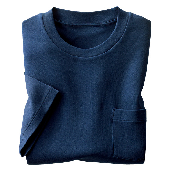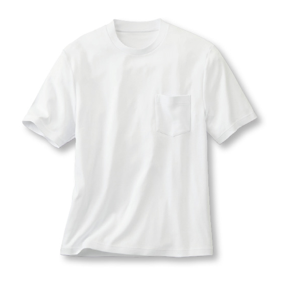 抗菌防臭、吸水速乾の綿100%スムース素材。後ろ衿が高めでアウターの衿汚れを軽減。