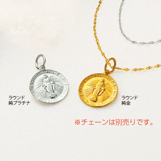 お守りのように身に着けたい聖母マリアのコイン。純粋な輝きとクラシカルなデザインが格調高く融合しています。