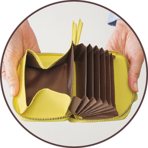 ●仕様:開閉=ラウンドファスナー式、ポケット=外部にオープン式1個、内部にオープン式2個・カード入れ6個・小銭入れ1個付き