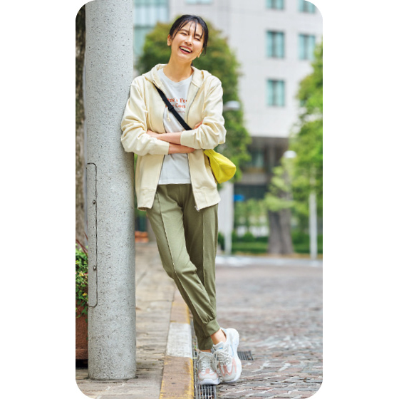 吸水速乾で汗ばんでもサラリ。スラッとはけるきれいめジョガー。