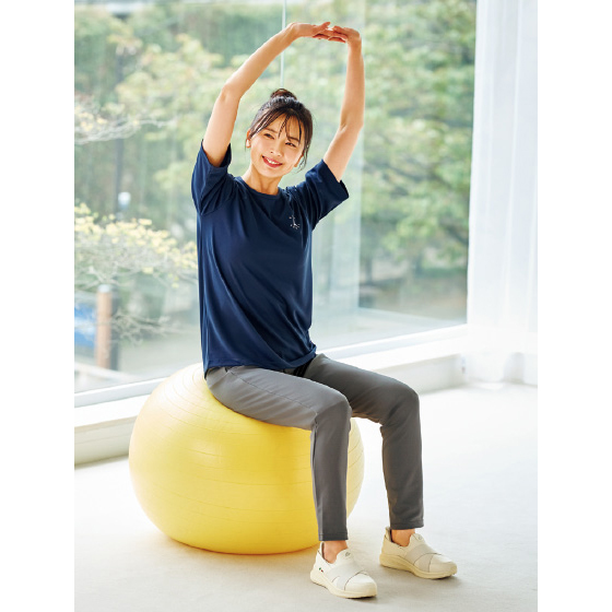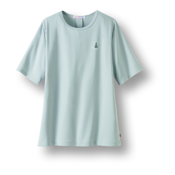 裏は通気性のよいメッシュで、汗をかいてもサラッと快適。おなか回りをカバーするシルエットでふだんにも活躍するデザインです。ゆったりめの袖で二の腕をカバー。後ろタックでシルエットふんわり。
